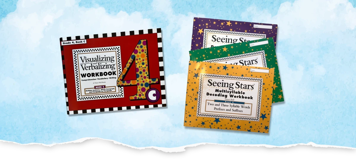 Visualizing and Verbalizing Workbooks are graded from levels 2-6. Workbooks feature stories about fascinating people, animals, events, and engaging subjects. Each story is followed by questions and activities designed to develop imagery and critical thinking.